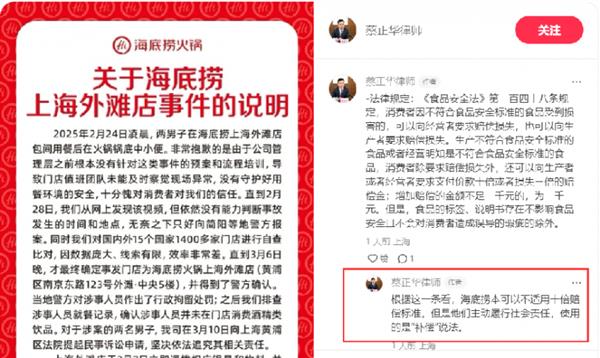 此次事务并未影响消费者对海底捞的喜爱程度,4109单顾客之一的陆先生告诉记者,正在取海底捞外滩店商定好退款及弥补事宜外,13日半夜他仿照照旧前去海底捞就餐。除网友评论之外,也有不少专业人士提出了本人的见地。相关专业律师暗示,按照《食物平安法》,海底捞天性够不合用十倍补偿尺度,可是他们自动履行社会义务,利用的是“弥补”说法。