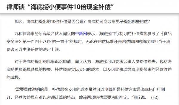 网友心疼海底捞不止是10倍弥补金,而是海底捞和消费者一样,同样是“者”,且十分承认海底捞的处置体例,有款式。